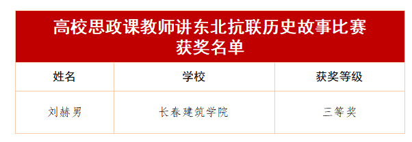 近日,由吉林省教育厅主办的高校思政课教师讲东北抗联历史故事比赛圆满收官。经学校推荐、省级初赛选拔及决赛现场展示,学校马克思主义学院思政课教师刘赫男凭借出色表现,荣获三等奖。