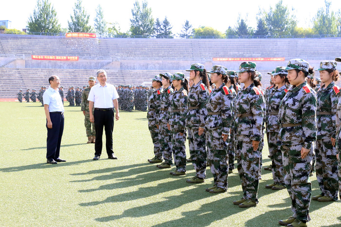 9月5日上午,学校校长任玉珊、党委副书记张冀男带领相关部门负责人前往军训训练场,看望慰问2025级新生及承训教官。
