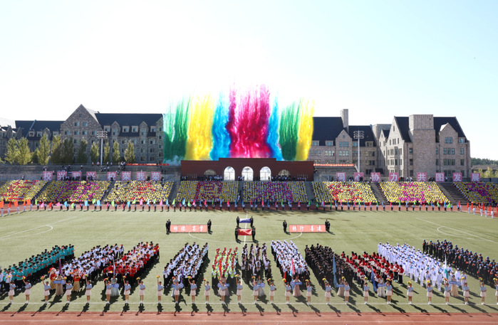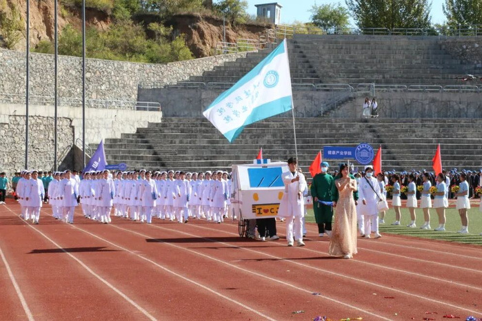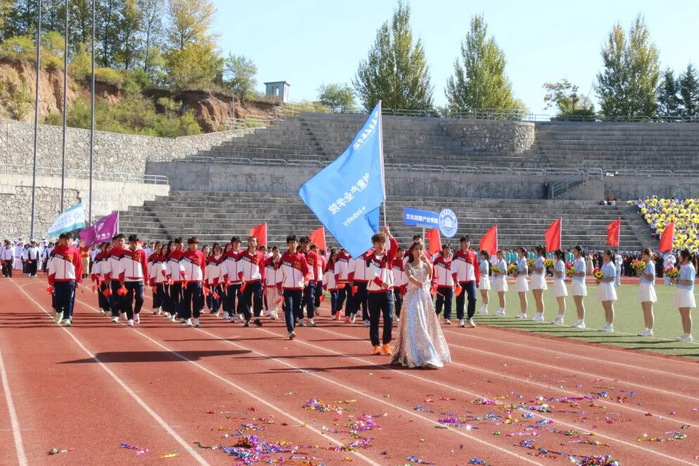 在悦耳动听的旋律与热情洋溢的解说声中,国旗方队、校旗方队、校训方队、花束方队、刀旗方队、彩旗方队、教工联合方队、各学院代表队依次步入运动场。他们精神抖擞、意气风发,整齐的步伐与坚定的目光,展现了昂扬向上的精神风貌与奋发有为的青春力量。