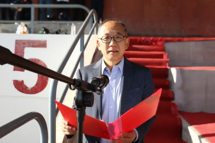 校长任玉珊发表讲话。他代表董事长和全校师生员工,向来自全国27个省、市的4571名新同学及专升本同学表示热烈欢迎,郑重宣告大家正式成为“长建人”。他以“大学·成长·未来”为脉络,阐释了大学作为精神底色的核心价值,希望同学们深刻理解从“初见”长建到共同书写长建与时代“新章”的使命,珍惜这个与时代同频、与行业共振的成长平台,在未来的学习生活中,不仅获取知识,更要收获精神的成长与品格的锤炼。